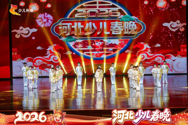为弘扬中华传统武术文化,展示我县青少年昂扬向上的精神风貌,受河北电视台少儿科教频道邀请,我中心武术部在王新洋总教练的带领下,于2026年1月18日,赴衡水保利大剧院参加了该频道“新春贺岁”系列节目的录制工作。本次录制旨在为全省青少年观众呈现一场充满活力与传统文化韵味的武术表演,送上新春的祝福。